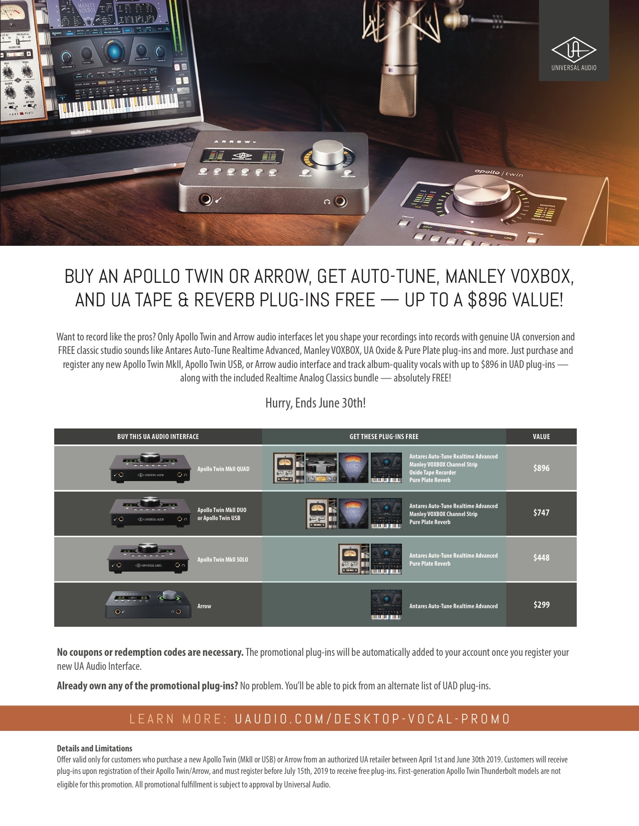 Buy a Universal Audio Apollo Twin or Arrow, get free plug-ins!